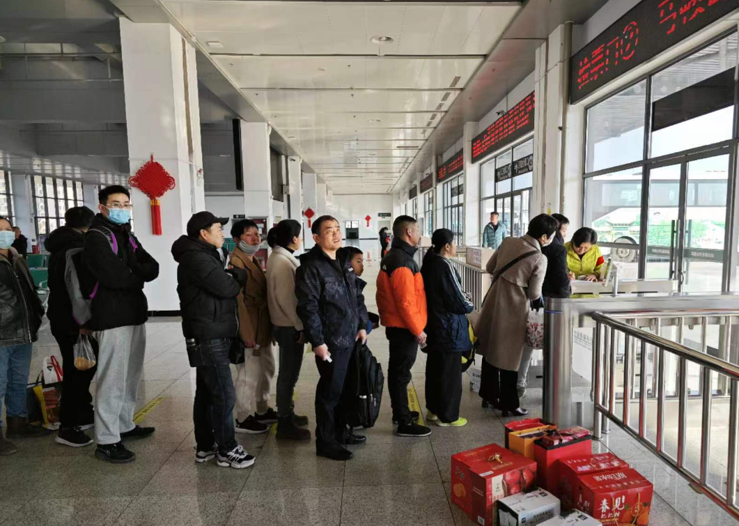 2月6日,位于火車站站前廣場處的城際公交驛站內(nèi),人頭涌動,室內(nèi)在空調(diào)的加持下暖意融融,與室外陰雨綿綿、寒風(fēng)